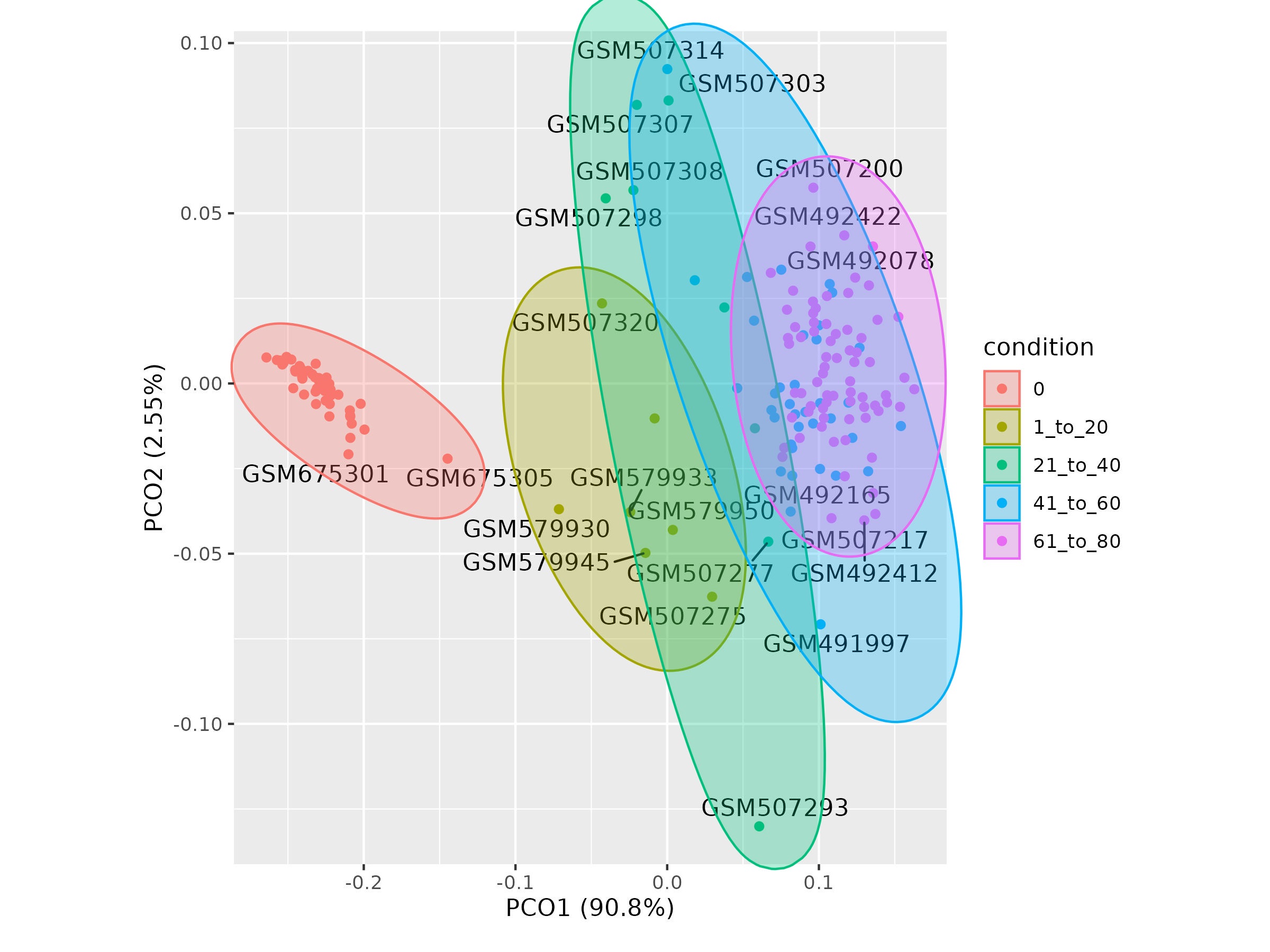 Group information file is optional. If uploaded, the clustering results of the PCA/PCoA/t-SNE/UMAP algorithm will take a different color scheme according to the group.