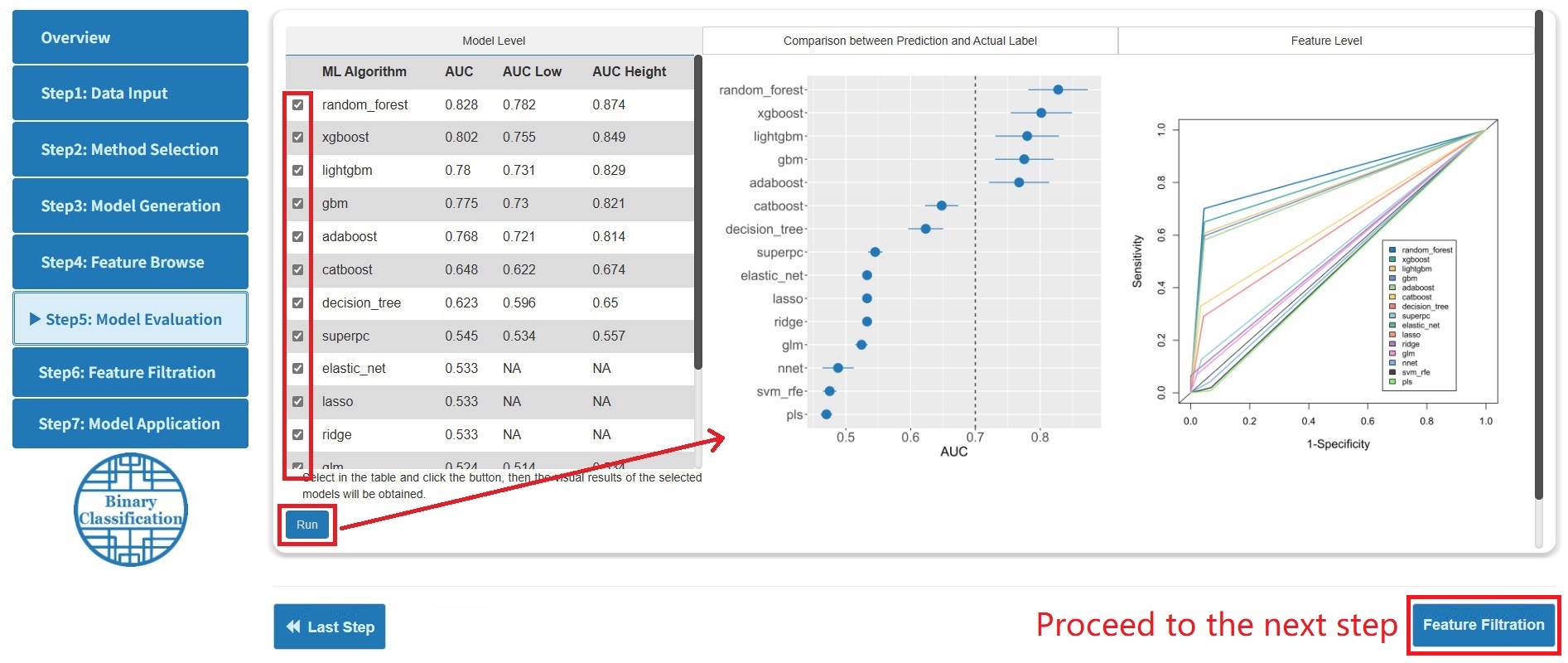 - The visualization ways of binary classification, multiple classification and survival analysis at this stage are different. Here, only binary classification analysis is presented.